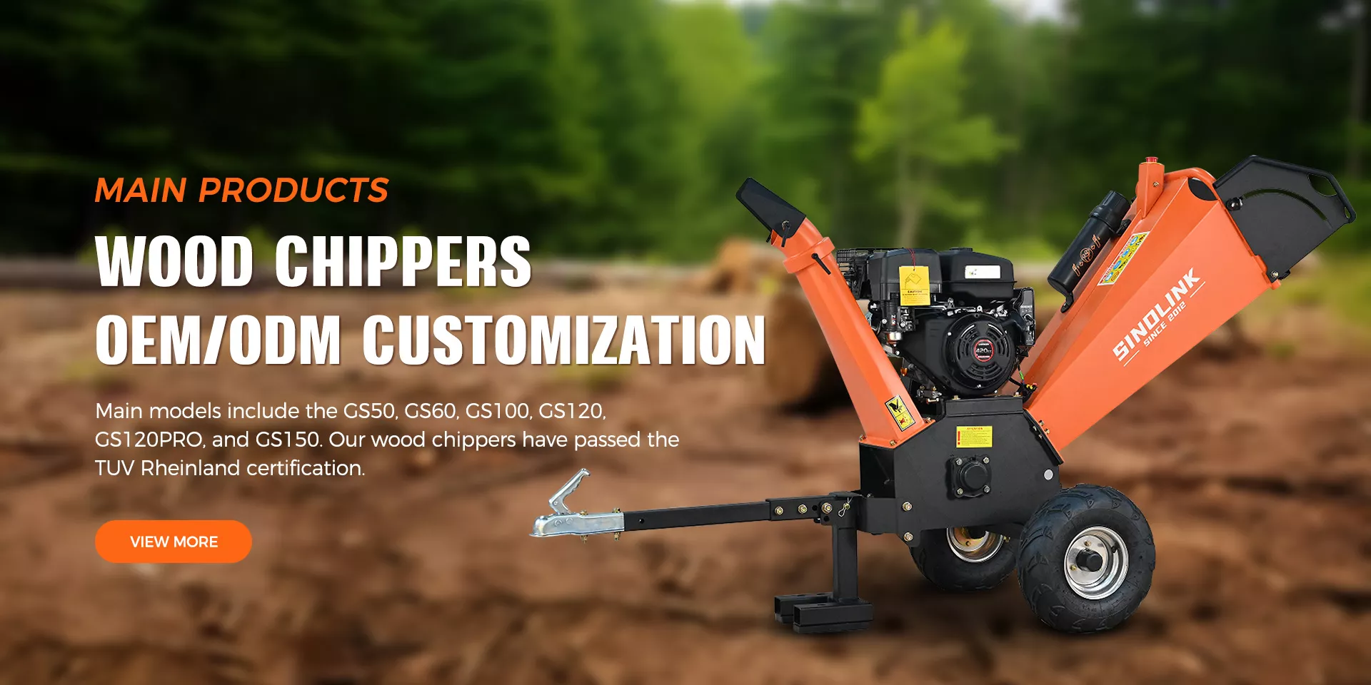 WEIFANG SINOLINK HEAVY INDUSTRY CO.,LTD.'s main product is wood chippers. Based on the global variety and hardness of wood, we have developed and designed two cutting and crushing methods: drum and disc. Main models include the GS50, GS60, GS100, GS120, GS120PRO, and GS150. And our wood chippers have passed the TUV Rheinland certification.